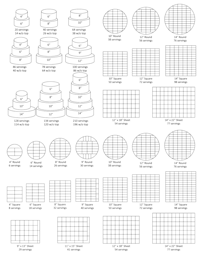 Calculate what size of cake you need based on the number of Guests and how to slice